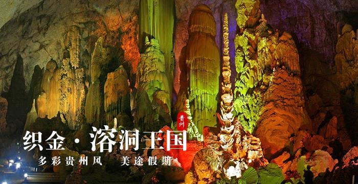 惊叹于琳琅满目的钟乳石,仿佛进入五彩缤纷的奇幻世界。 织金洞原名打鸡洞,是中国目前发现的一座规模宏伟、造型奇特的洞穴资源宝库.洞中遍布各种形状的石笋、石柱、石芽、钟旗等,形成千姿百态的岩溶景观。由于整个洞穴景区的游览路线是单向行走路线,所以只要进洞就必须走完全程,从出口出来以后再搭乘电瓶车回到景区门口。在洞穴里可以欣赏到遍布的石笋、石柱、石芽、钟旗等各种堆积岩石,形成千姿百态的岩溶景观。洞道纵横曲折,石峰星罗四布。万千景象,美不胜收,令人不经感慨大自然的鬼斧神工。